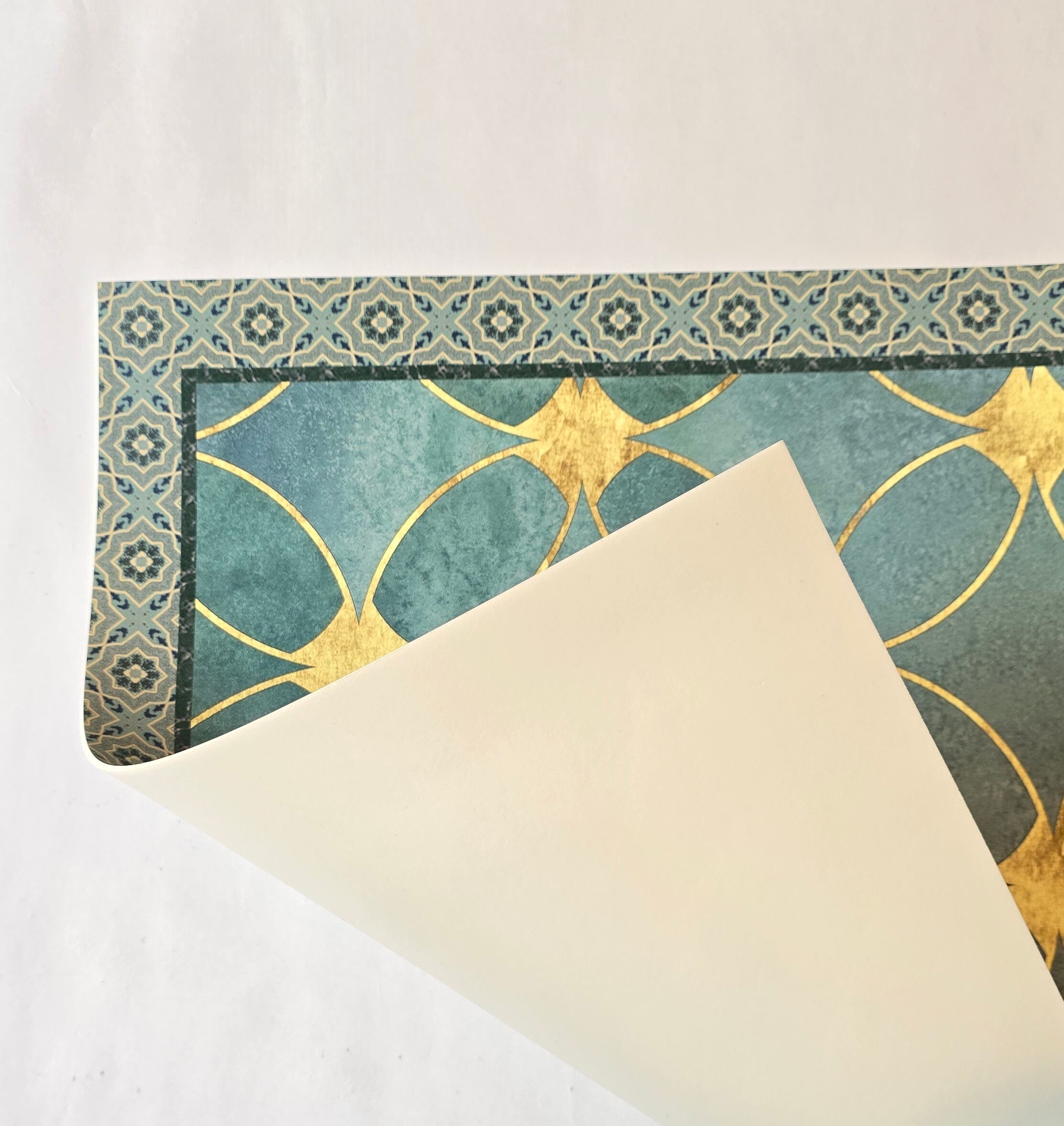 Grace mat Runner Green Gold 【防水・防汚・滑り止め】おしゃれビニール製ランナー&カーペット|キッチン・リビング・廊下・ベッドサイド・屋外対応