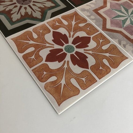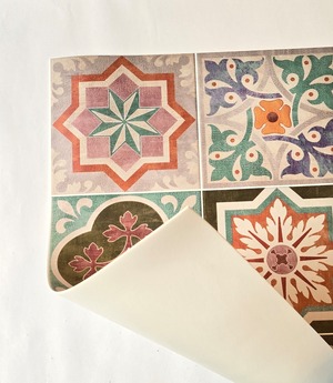 Grace mat Runner Tile Flower 【防水・防汚・滑り止め】おしゃれビニール製ランナー&カーペット|キッチン・リビング・廊下・ベッドサイド・屋外対応