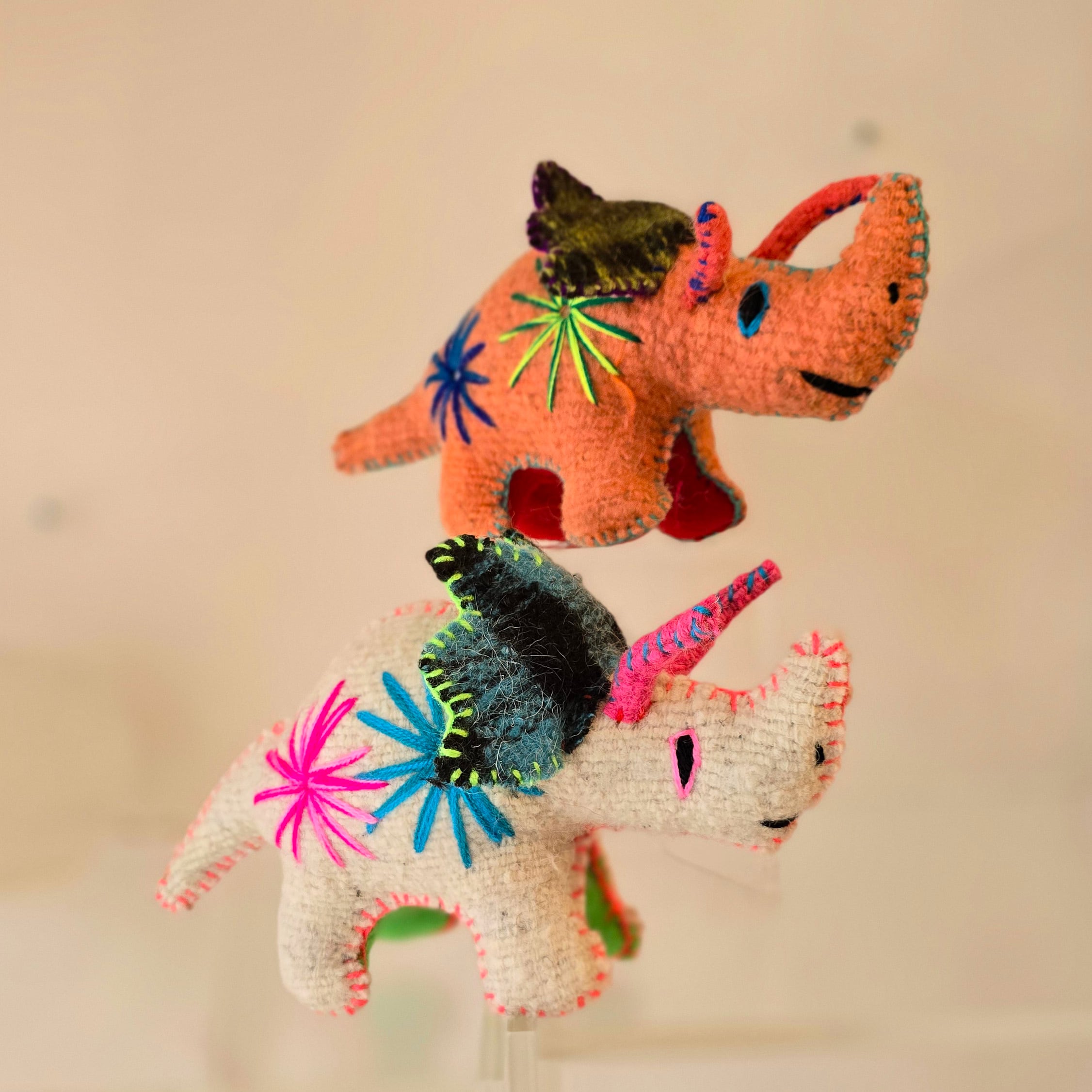 【メキシコ直輸入】ハンドメイドぬいぐるみ ANIMAL PARADISE TRICERATOPS|カラフルな海外雑貨 インテリアにもおすすめ