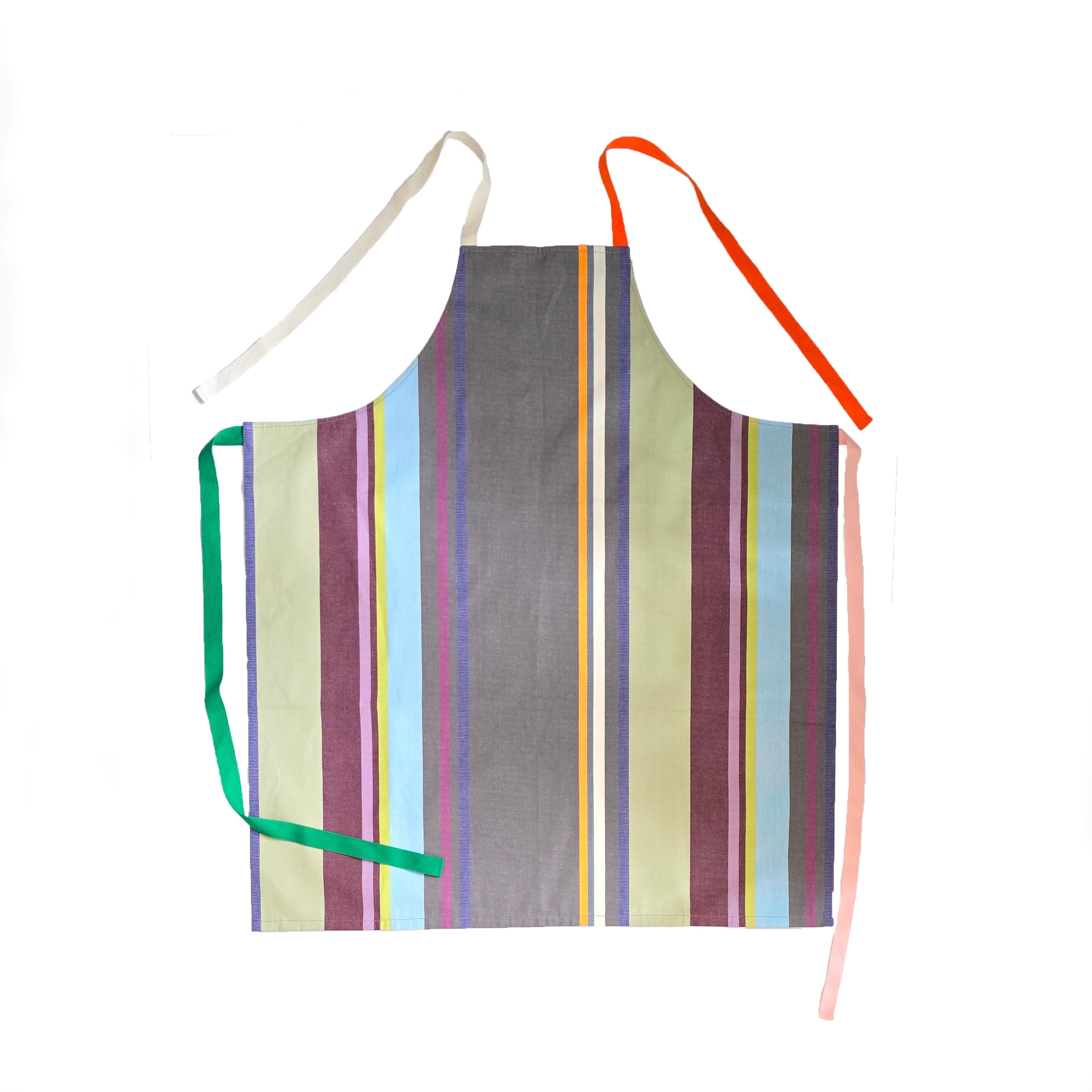 【英デッドストック生地使用】ストライプ エプロン|バイカラー紐がおしゃれ|マテリアカーサ オリジナル